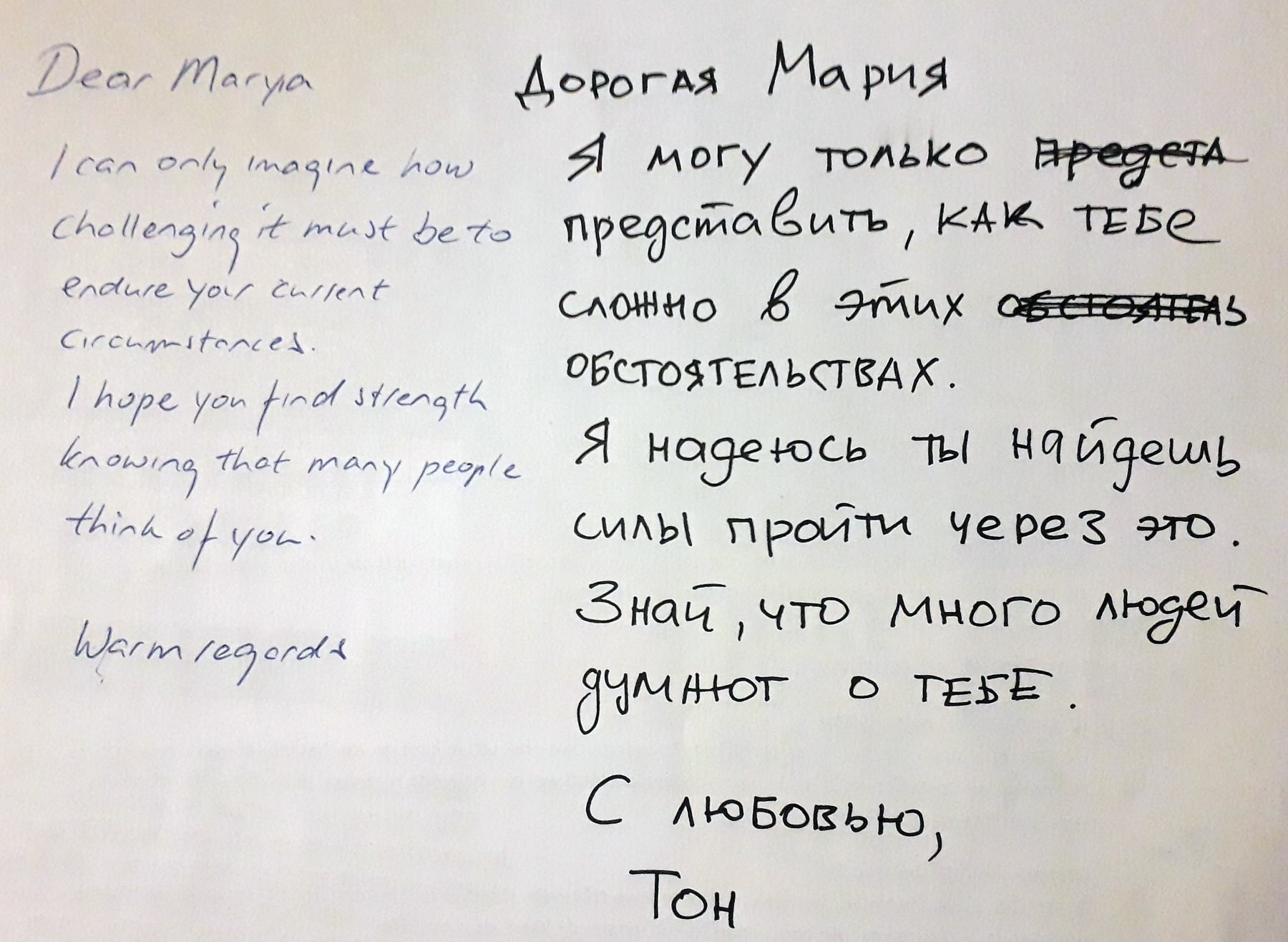 En heeft het zin, vraag je je af. Komen de brieven en kaarten wel aan, worden ze gelezen, verandert er iets voor de mensen die we schrijven of over wie we schrijven? Voor Maryia bijvoorbeeld?