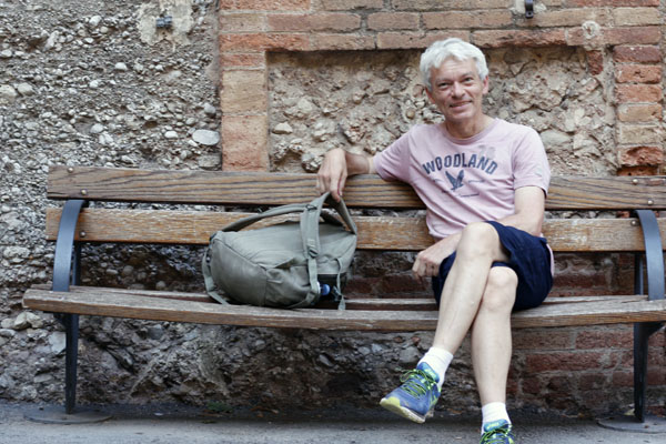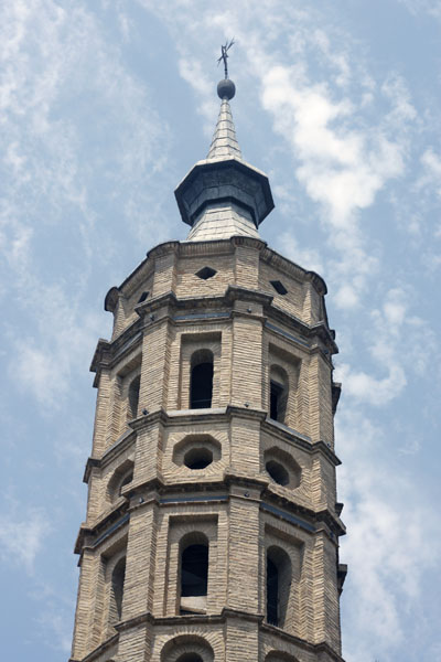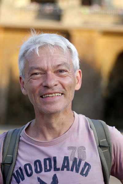 Bij het kerkje van Eunate, in Navarra, 300 km verderop