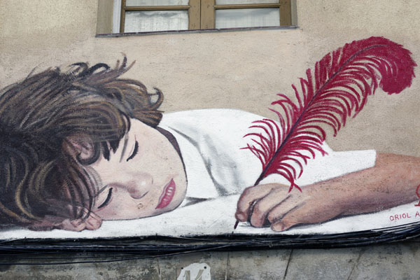 Streetart van Oriol Arumi in de winkelstraat in Lleida